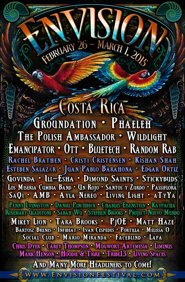 Costa Rica News & Events – The first headliner announcement for the 5th annual Envision Festival-Costa Rica is here. This year’s lineup includes Groundation, Phaeleh, The Polish Ambassador, Wildlight, Emancipator, Ott, Bluetech, Random Rab, Govinda, Ill-Esha, Dimond-Saints, Stickybirds, AMB, Ayla Nereo, and GsaQi, with Costa Rican reggae headliner Un Rojo and Guatemala’s Los Miseria Cumbia Band. There are more acts listed below and many more to be announced!
