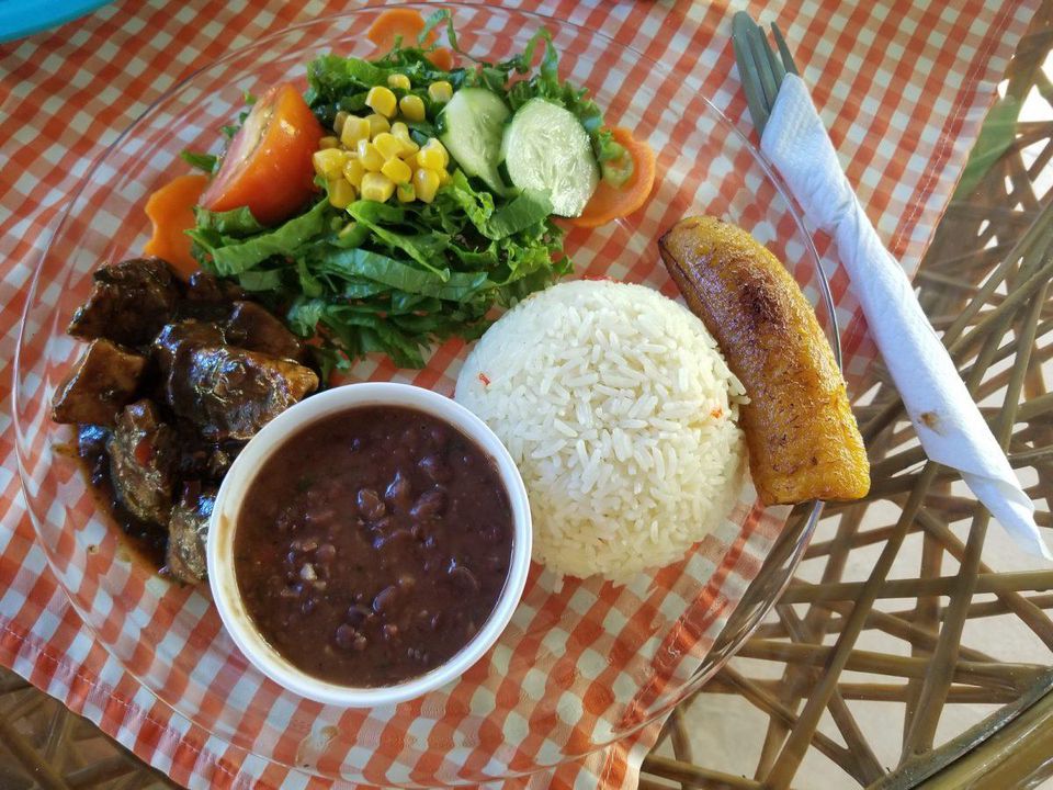 Concluding the Airbnb Experiences Waterfall tour, you stop off for an early dinner at the local Soda Garabito. The restaurant is located in the bustling town of Jaco and offers a cafeteria style serving, where you can order different dishes by a la carte. One well-balanced meal could consist of fish, rice and beans, steamed veggies, and plantains.