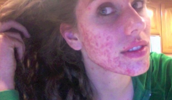 She goes to show the extent of the problem as the acne has spread to her neck, shoulders and back.