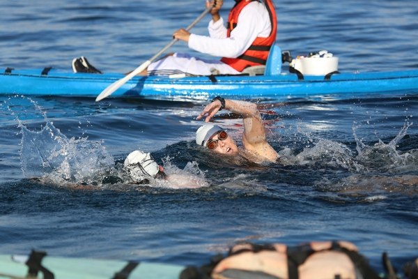 Those swimming the 14 km race also have kayakers. Shorter races include the 5 km and 1.5 km ones. All the athletes spent time training in the pool and sea to prepare for this day.