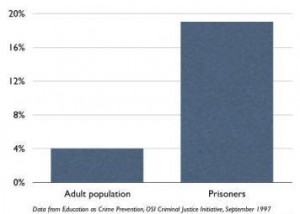 This graph shows the proportion of US inmates that is illiterate, compared to total US illiteracy: