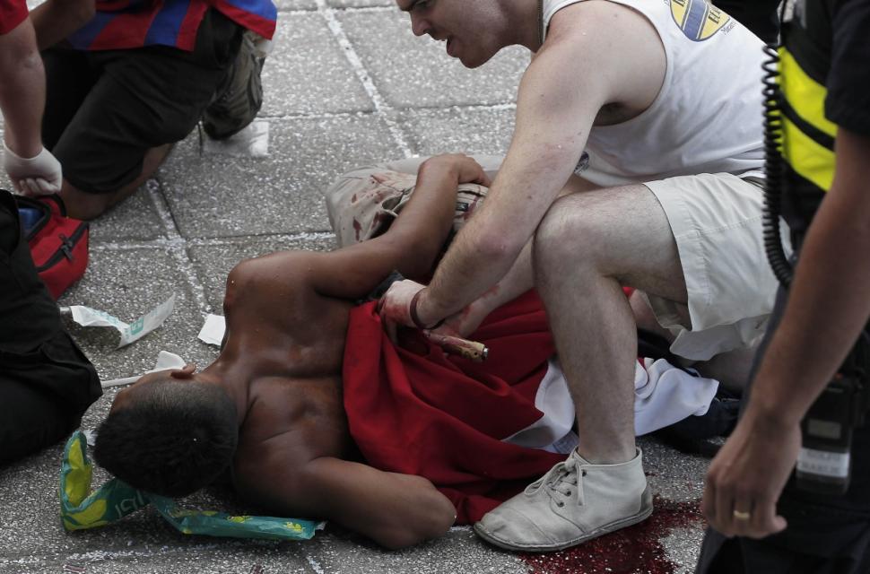 It is unclear how the attack began, but police quickly cleared the area and stood guard as the victims were being attended to.