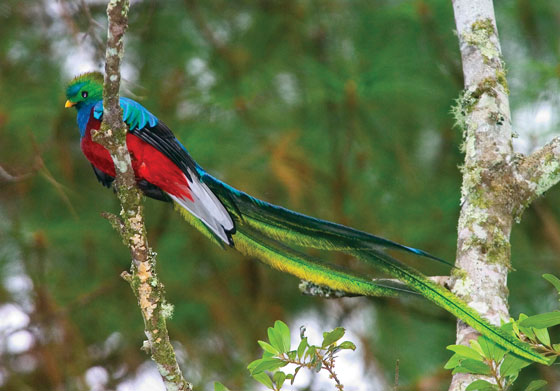 Gilbert declared it, “one of the prettiest birds on earth!” Quetzal’s name comes from the Aztec word for “beautiful,” the Quetzal has a green body and red breast, and males grow a giant tail during mating season. Revered in Mayan culture, it was a crime to harm one.