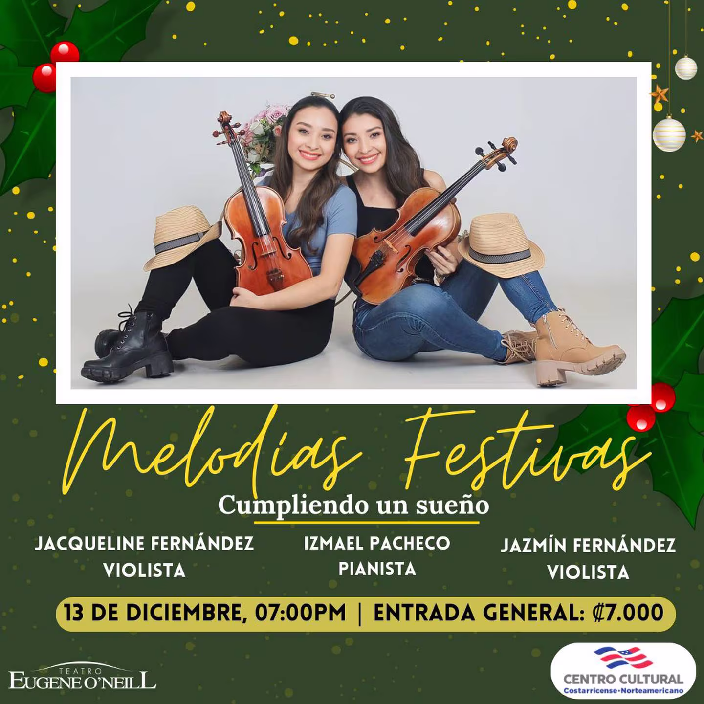 December 13th will see “Melodías Festivas” take center stage, promising a magical journey through holiday music. The concert features the violin virtuosity of Jazmín and Jacqueline Fernández Ramírez, accompanied by pianist Izmael Pacheco. Funds raised from this night will support the violinists’ participation in the 2024 International Music Festival of Guadalajara. Tickets for this melodious evening are priced at 7,000 colones and can be purchased at https://teo.cr.