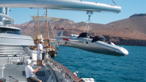 Hawkes doesn’t so much drop names as leak them. The names of the men who dive with him should sound familiar. Director James Cameron goes on dives. Richard Branson owns a 15-foot Merlin Series dubbed the Necker Nymph in tribute to his private Caribbean island and venture capitalist par excellence Tom Perkins owns a Super Falcon — exactly like the one Hawkes pilots regularly — which he used to keep aboard the Maltese Falcon, his famed superyacht.