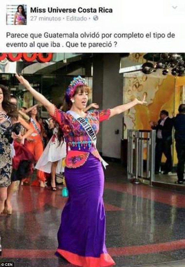 On the Miss Guatemala official Facebook page it said: ‘This is an insult to our culture and to our traditional Mayan tailors. We hope this comment was a mistake.’