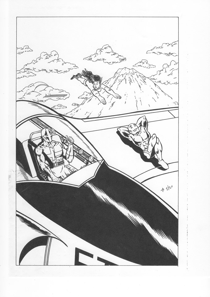 The drawing that goes along with this Mount Fuji article was done by no other than the great Thomas Ahearn – comic book artist extraordinaire. This drawing depicts The Demon Warrior aka Paul Dale Roberts flying his vintage F-80 Shooting Star that he restored. The Demon Warrior plans to travel the world in his restored plane with his group The Trio. In this drawing, sitting on the wing is Hoppy and flying behind the plane is Neon Meteor Star Goddess aka Deanna Jaxine Stinson. Behind The Trio is Mount Fuji in Japan. Villains reading this article, you have nothing to worry about, the plane is disarmed and is only used for pursuit and low flying punk out aerobatics to scare the bad guys.
