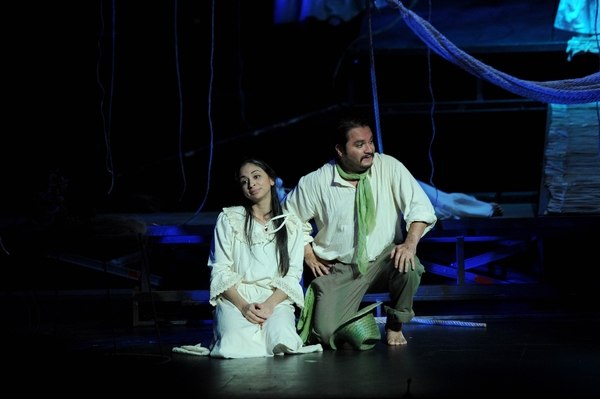 Amadeo Cordero and Isabel Guzmán star in the great production. The opening is moving. In it you hear a solo sharp violin and see smoke then a myriad of children and adults moving as eternal migrants seeking a home.