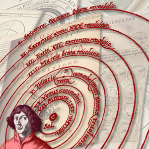 In the first century, the Greek astronomer Ptolemy, working in the great library in Alexandria, produced his earth-centered system of the universe. The Ptolemaic world-view held sway until the 16th century, when Copernicus demonstrated that the Earth revolved around the sun. Einstein in turn overthrew that paradigm, showing that all centers, and even time and space, are relative and in flux, and that no point is fixed in relation to others. There is no center in the universe.