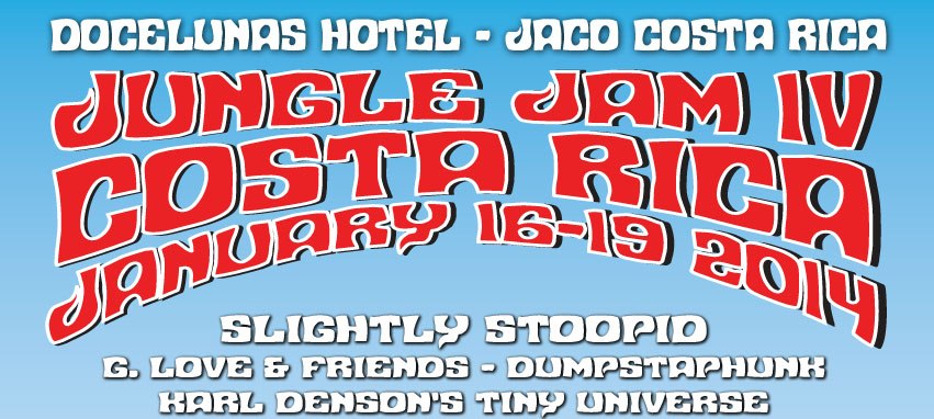Costa Rica News & Events – Slightly Stoopid, the Ocean Beach/San Diego, CA group will be joined by special guest reggae superstar Don Carlos at Jungle Jam IV January 16-19, 2014 in Jaco, Costa Rica.