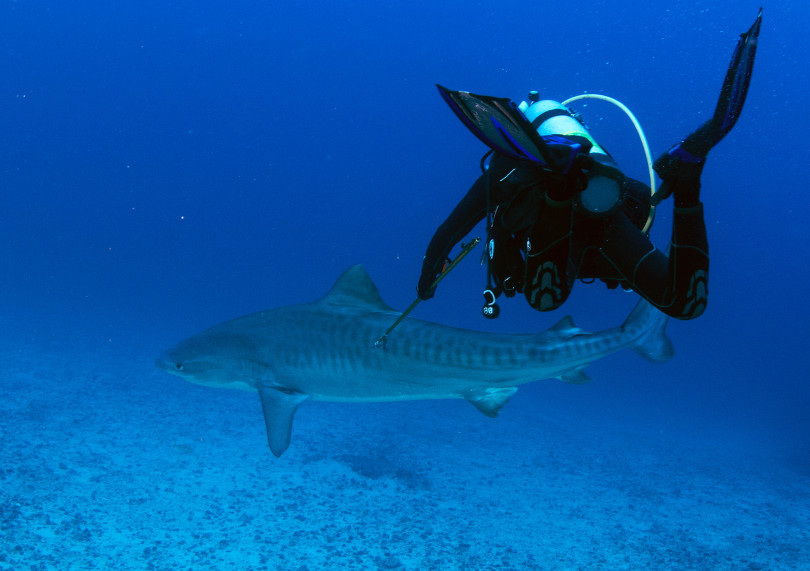 By tagging the sharks and knowing their behaviors, researchers will be able to help inform dive schedules and alert divers to avoid certain areas where a known hostile animal may be swimming in.