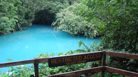 The Rio Celeste is off the beaten path as far as tourism goes, largely because it’s quite a remote location accessed on horrendous roads that make Monteverde’s roads look like a pleasant drive in the countryside. The easiest way to get there is from the Interamericana at Bagaces, twenty minutes south of Liberia. The paved Routa #6 then takes you on tarmac for about an hour all the way to Bijagua de Upala, which is 9km from the park entrance. 9km doesn’t sound very much, but when it’s mud, rocks and deep ruts that will eat a regular car for breakfast, you’ll be glad you are in a 4WD or that someone else is driving you there. There are a few accommodation options there from backpacker in Bijagua, to the rustic Carolina Lodge, the eco-friendly mid-range Celeste Mountain Lodge and if your bank balance can afford it, the luxurious Rio Celeste Hideaway, which may not be so eco-friendly with its air conditioning , swimming pool, jacuzzis and Balinese furniture, but it’s a great spot for a honeymoon or romantic getaway.