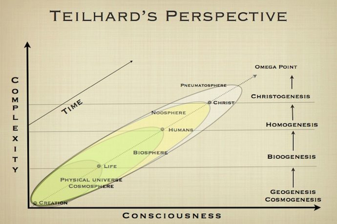 Nearly all explanations for “the riddle of man” suffer from enslavement to the idea of progress, including Teilhard de Chardin’s ‘Omega Point.” Even if evolution has an intrinsic drive toward ‘higher consciousness,’ it hits a big bump in the road with the evolution of ‘higher thought.’